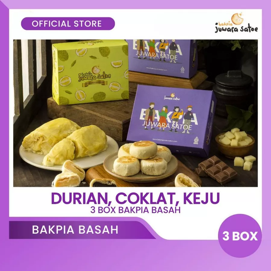 BAKPIA JUWARA SATOE [ 3 Box ] Paket Mix Combo Bakpia Basah (Durian, Coklat, Keju)