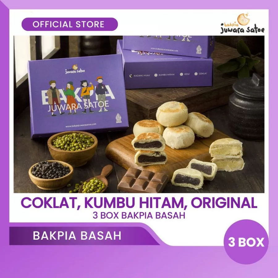 BAKPIA JUWARA SATOE [ 3 Box ] Paket Bakpia Basah Mix (Original, Kumbu, Coklat)